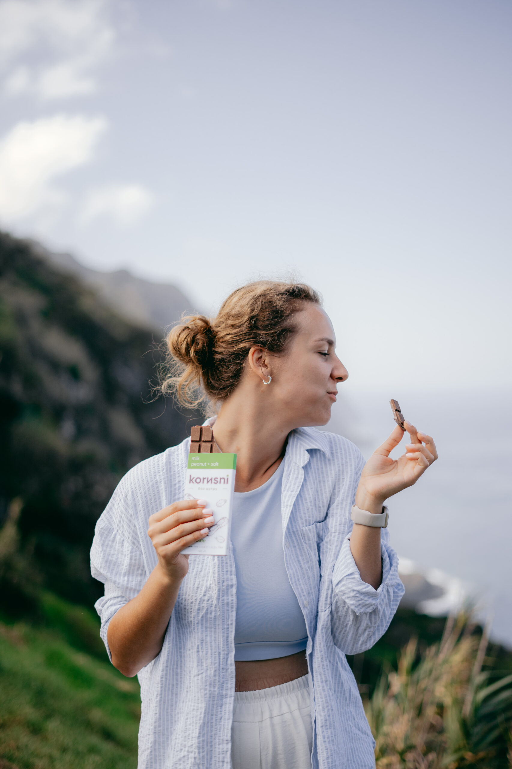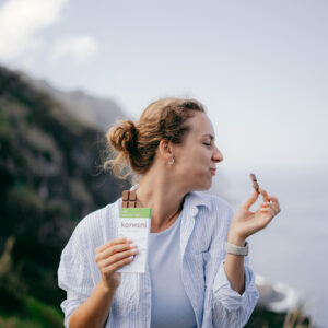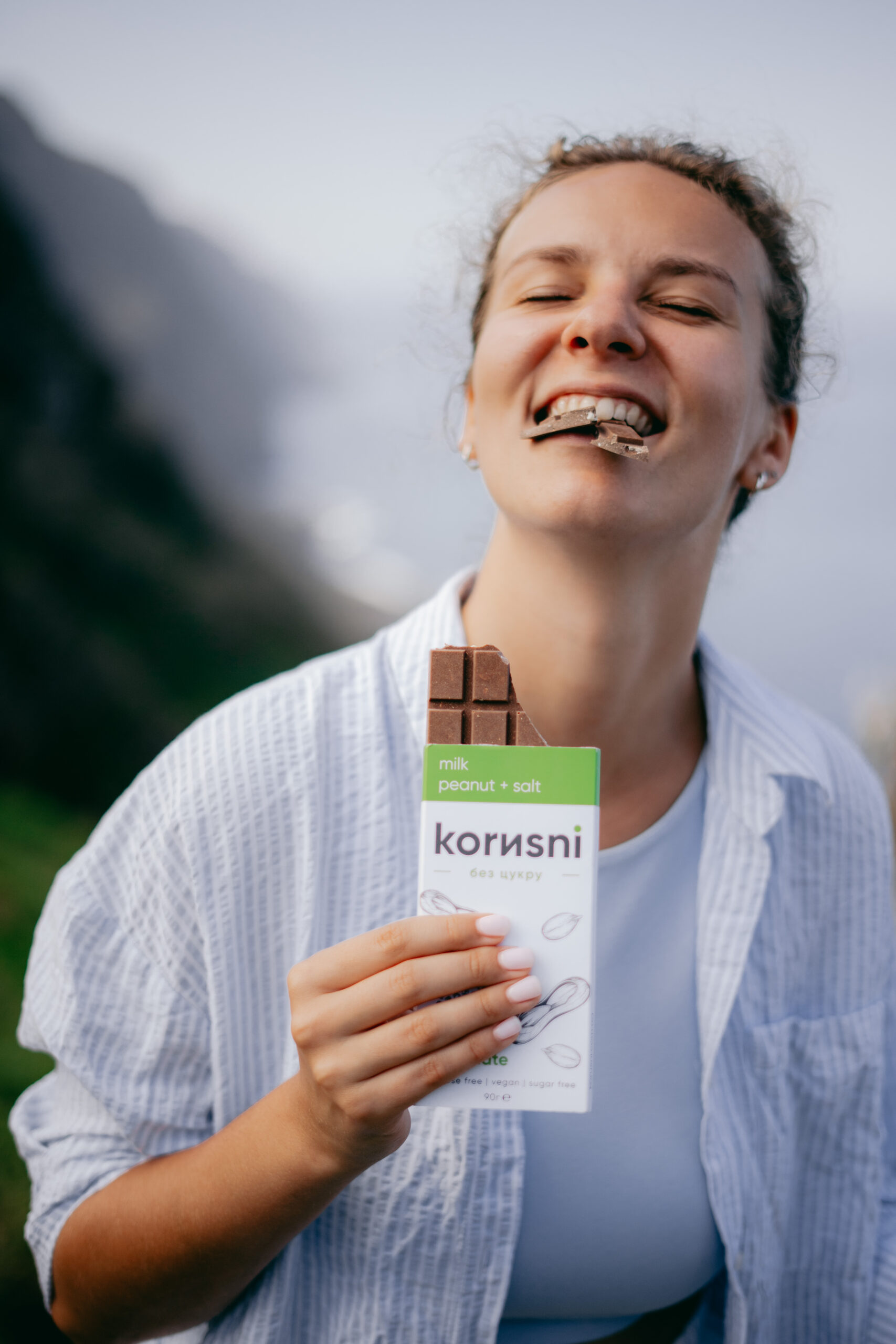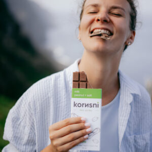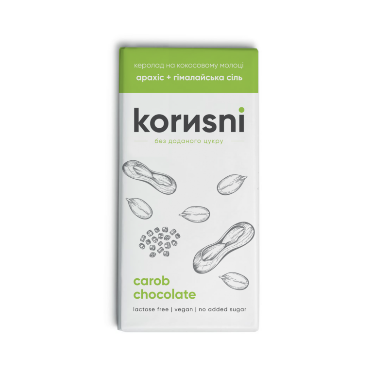 Склад: масло какао, кероб, молоко кокосове сухе, арахіс, натуральний підсолоджувач – естракт стевії, сіль гімалайська.
